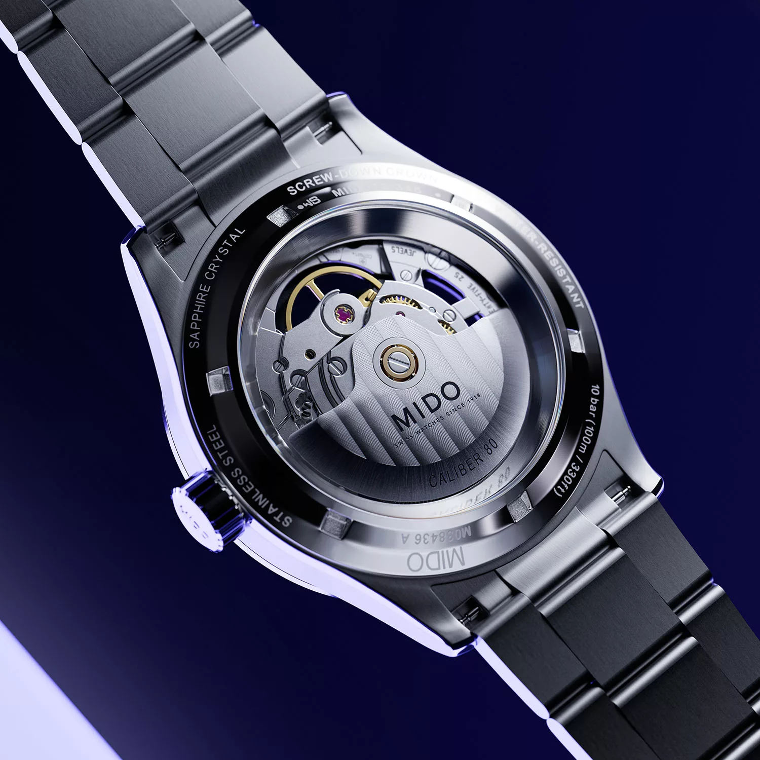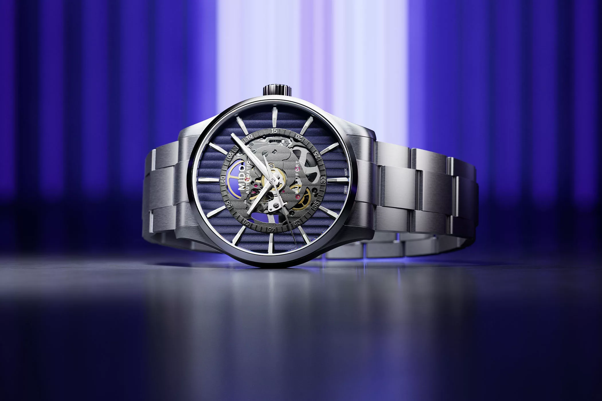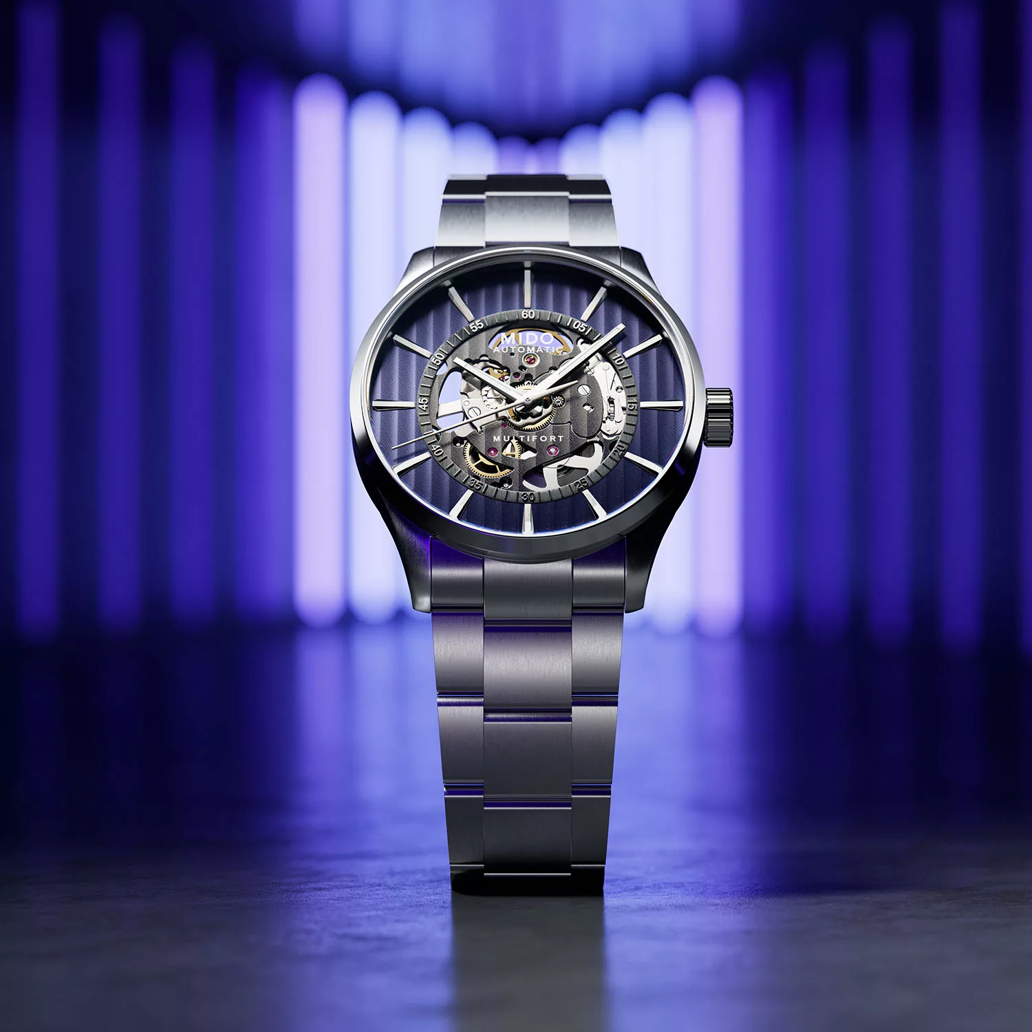 The Multifort Skeleton Vertigo Blue ticks with the reliable Mido Caliber 80, a Swiss powerhouse boasting an 80-hour reserve (weekend-proof!). A high-tech Nivachronâ„¢ spring shields it from magnetism, shocks, and even temper tantrums. From boardroom to beach, it transitions seamlessly thanks to a sporty bracelet and see-through case back. All yours for CHF 1,080 or EUR 1,200 at authorized Mido retailers.