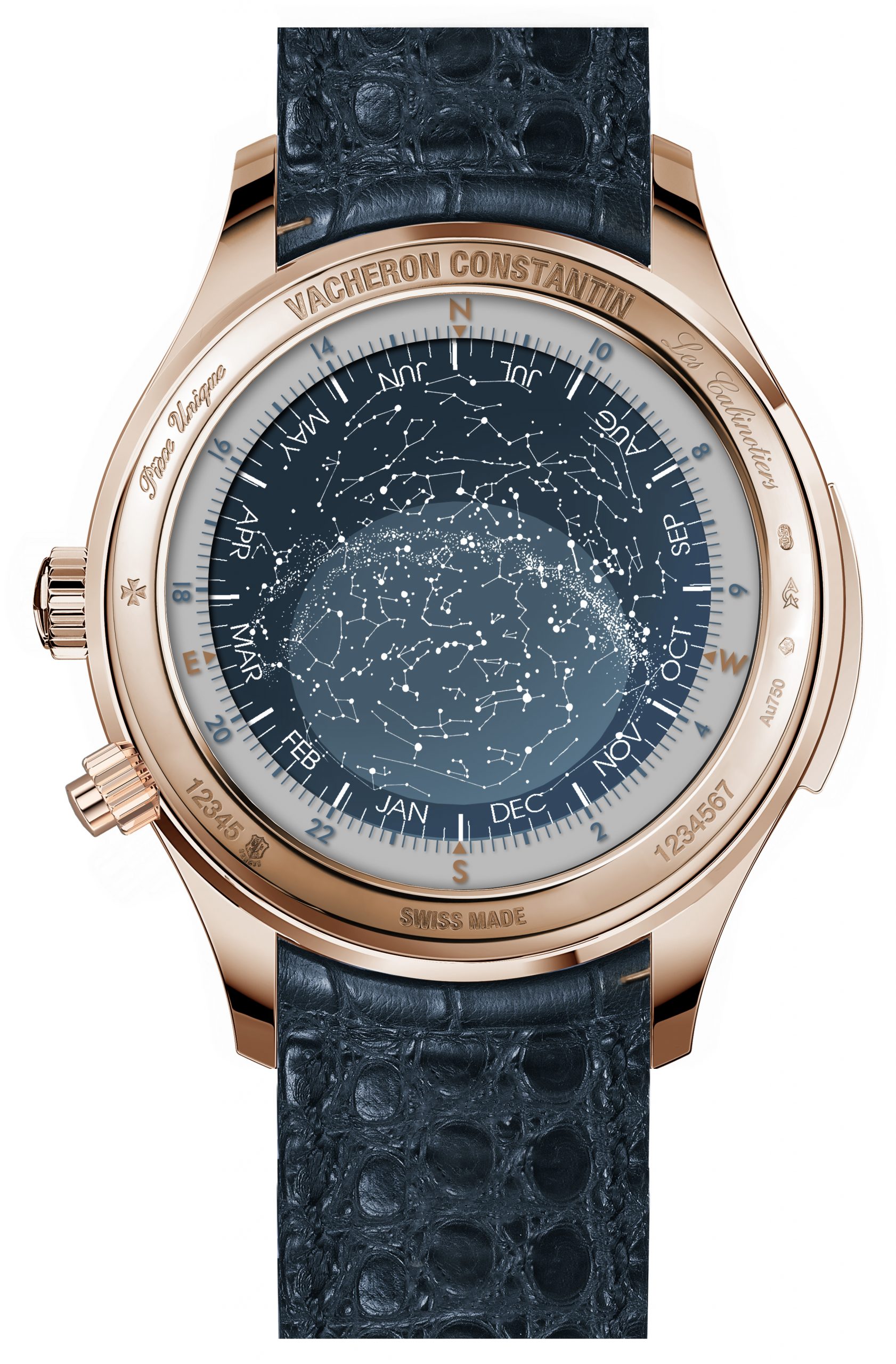 A more restrained variant in the ‘La Musique du Temps’ range of watches comes with a more straightforward dial that has been offset. At first glance, this guilloché-dialled watch appears more restrained than the enamel watches we’ve just seen, at least upfront. Around the back is where it gets more interesting, though, as the calibre 2755 TMRC features a sky chart. It corresponds with sidereal time; thus, it makes one rotation every 23 hours and 56 minutes and has been decorated beautifully. Vacheron Constantin has also pointed to its 250th-anniversary piece, the Tour de l’Ile as inspiration for this new watch.