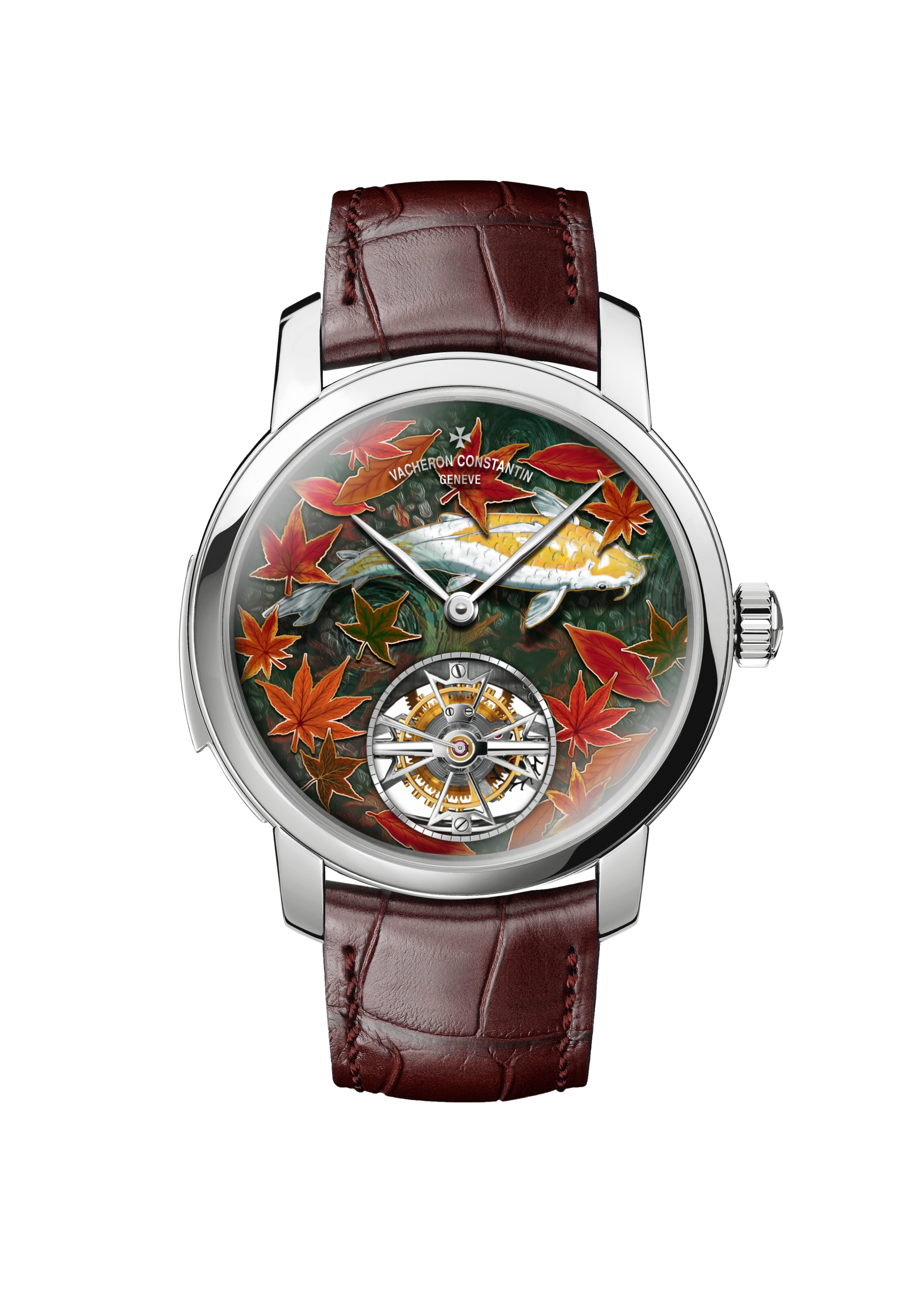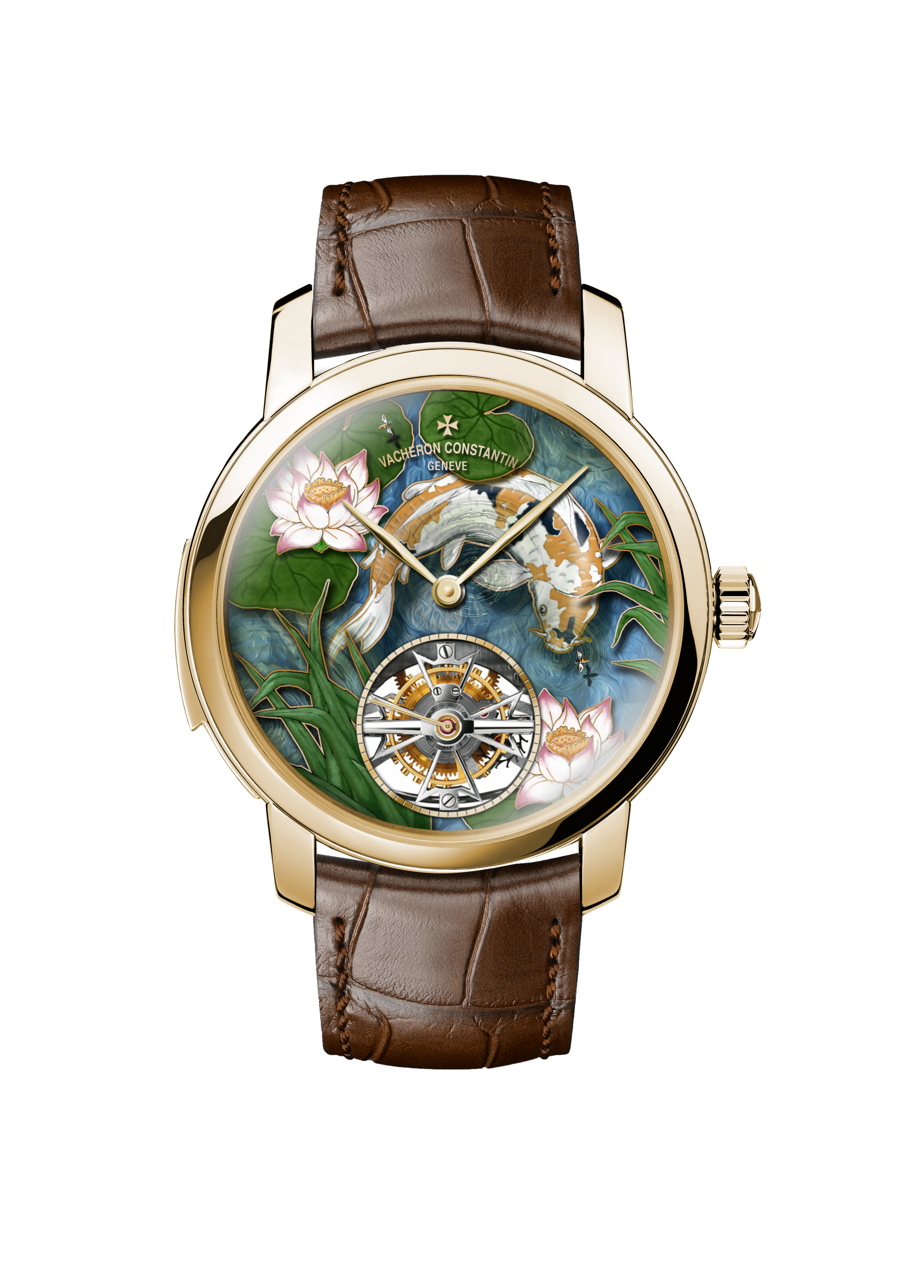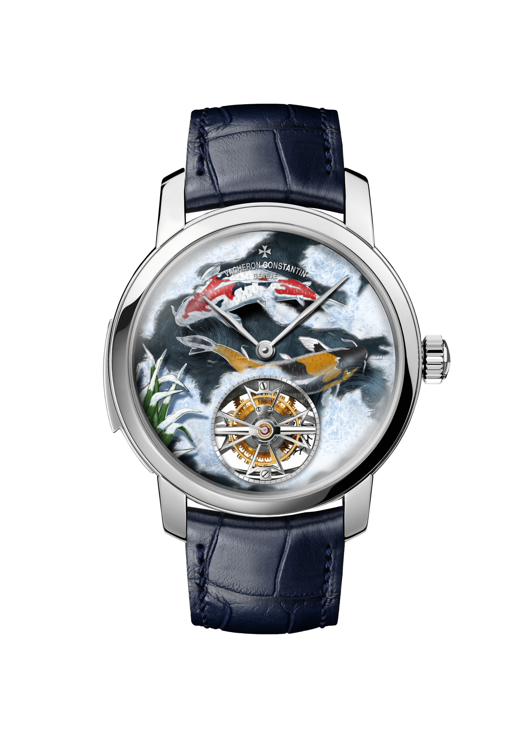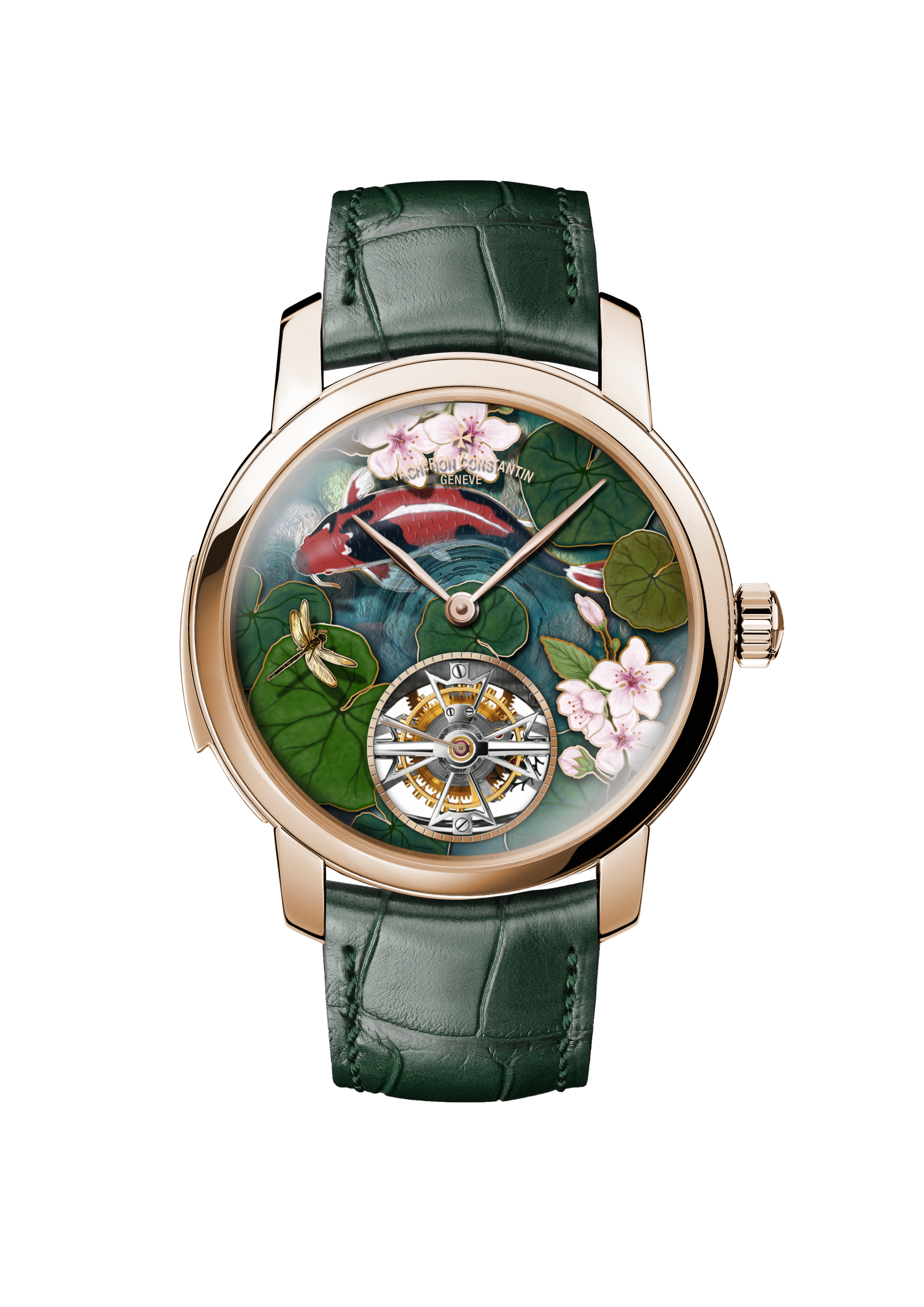 Four different versions of the ‘Four Seasons’ watches appear in this collection, each one both demonstrating Vacheron Constantin’s artistic ability with dials, but also their technical expertise in terms of movement making. The dials of these watches all display carp swimming at different times of the year, the four seasons. Each dial uses champlevé enamelling as the base, with gold used to separate each section of the dial. Fifteen individual firings create the deep and vibrant colours seen on these watches, with a tourbillon fitted with the Maltese cross sitting at 6 O’clock.