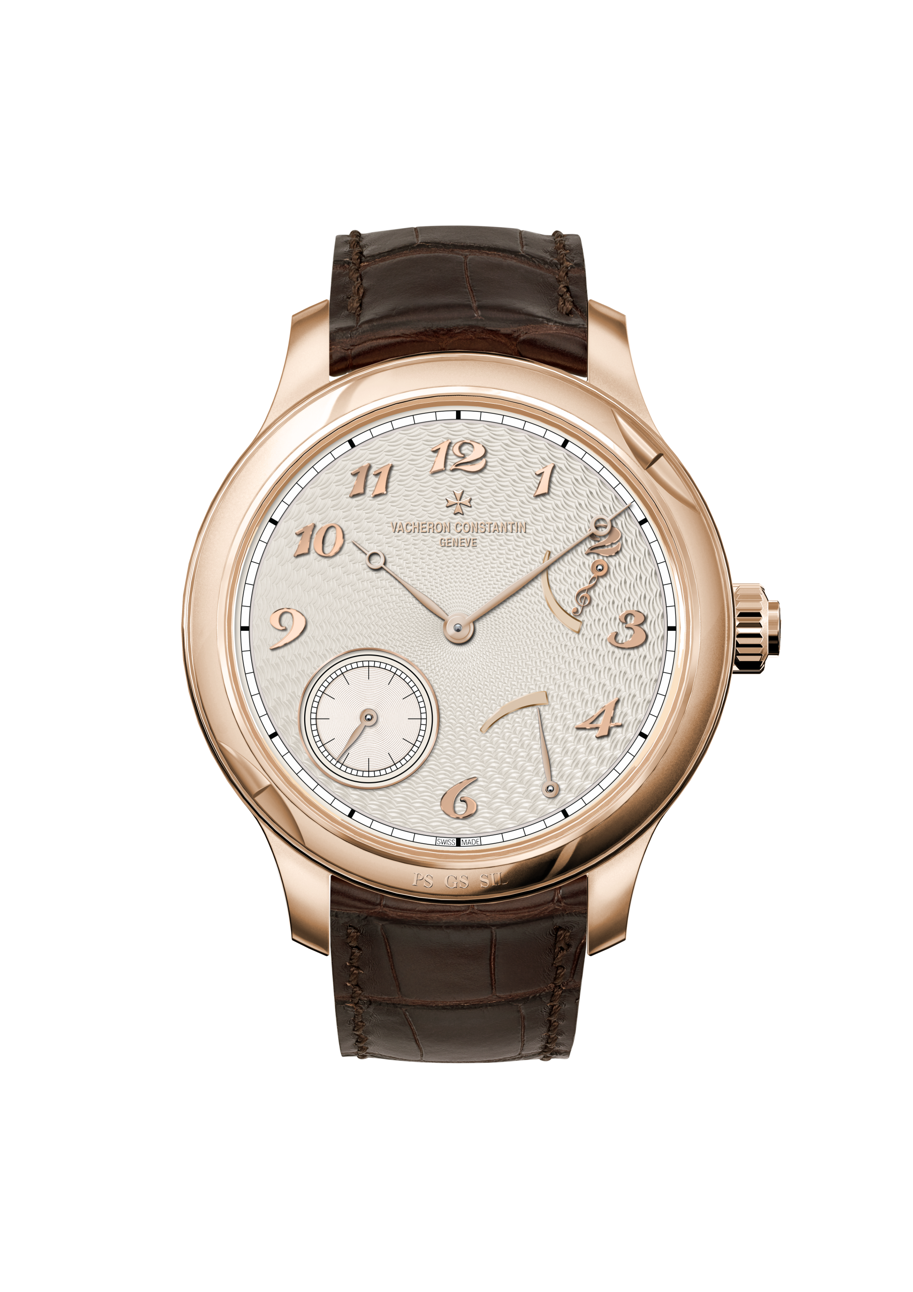 Let’s start with what is probably my favourite of the new watches, the ‘La Musique du Temps’ version of the new minute repeater collection. It’s subtle in its 41mm rose gold case with charismatic italic Arabic numerals on the dial. They’re quite similar in appearance to the numerals found on the Historiques American 1921 watch, but longer instead. The movement inside is calibre 1731; it’s 3.9mm thick and has a 65-hour power reserve. Also, the sound of the minute repeater has been recorded and certified by Abbey Road Studios, which has captured the exact sound the minute repeaters create. This connection with Abbey Road Studios extends across the entirety of the new line of minute repeater watches.