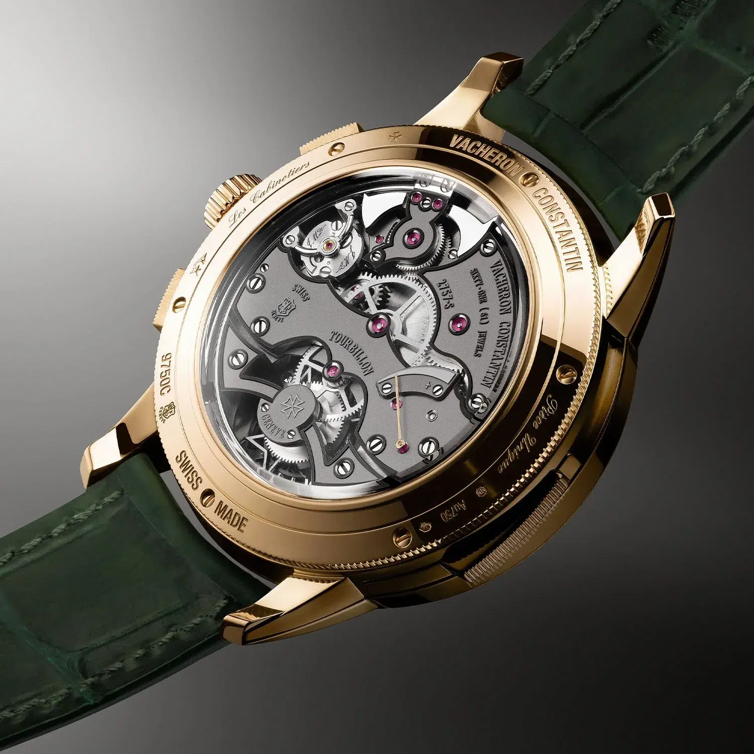 Inside ticks the manual wound Calibre 2757 S, built from 696 components and 61 jewels. It runs at 18,000vph with a 58 hour reserve, using titanium, silicon and aluminium to reduce weight and friction. The movement features bevels, engravings, frosted and sandblasted finishes, a black NAC coating, polished screws and Jean-Marc Vacheron’s initials on the striking governor.