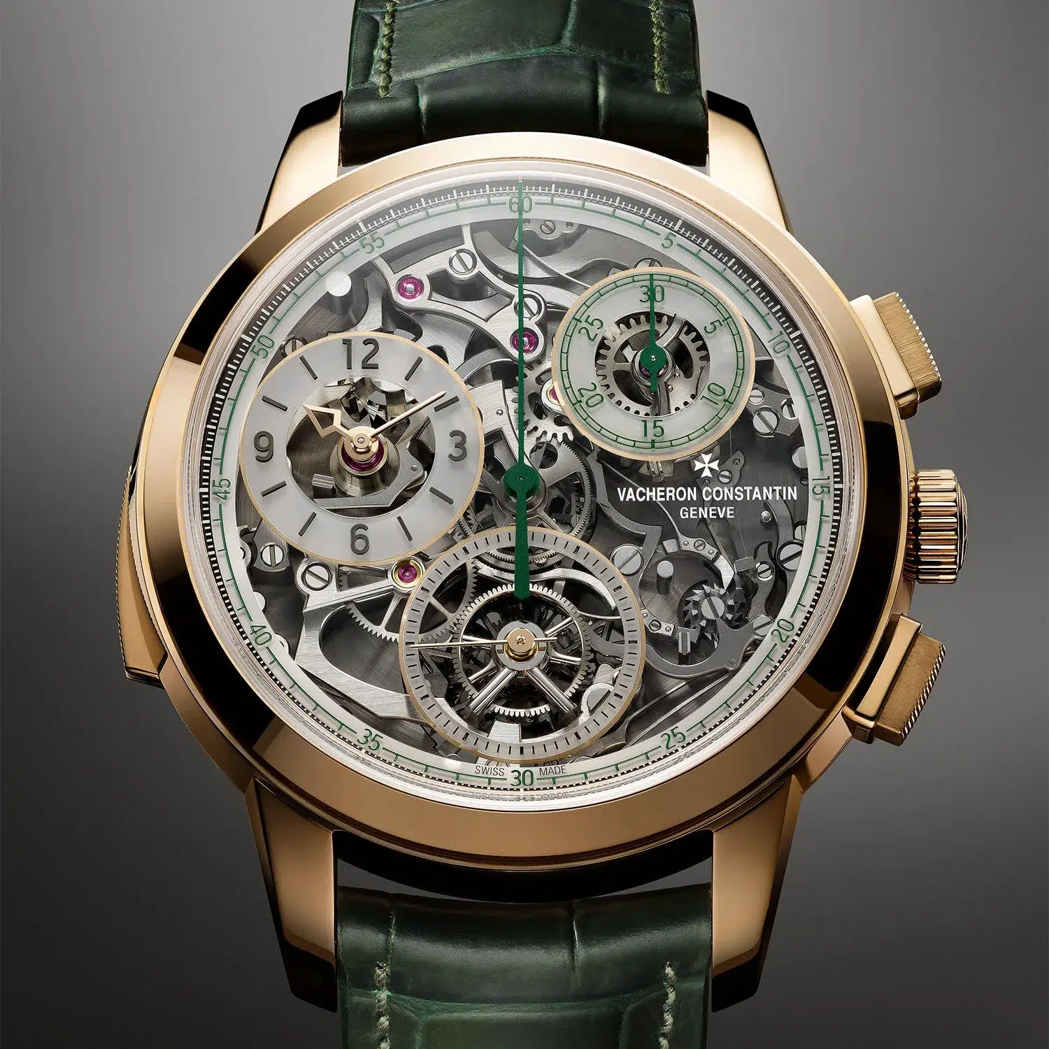 Vacheron Constantin has once again turned to its secretive horological sanctum, Les Cabinotiers, to conjure up a one-off creation that’s as elaborate as its name is long: the Les Cabinotiers Temporis Duo Grand Complication Openface. It carries a trifecta of mechanical theatrics that includes a tourbillon, split-seconds chronograph and minute repeater.