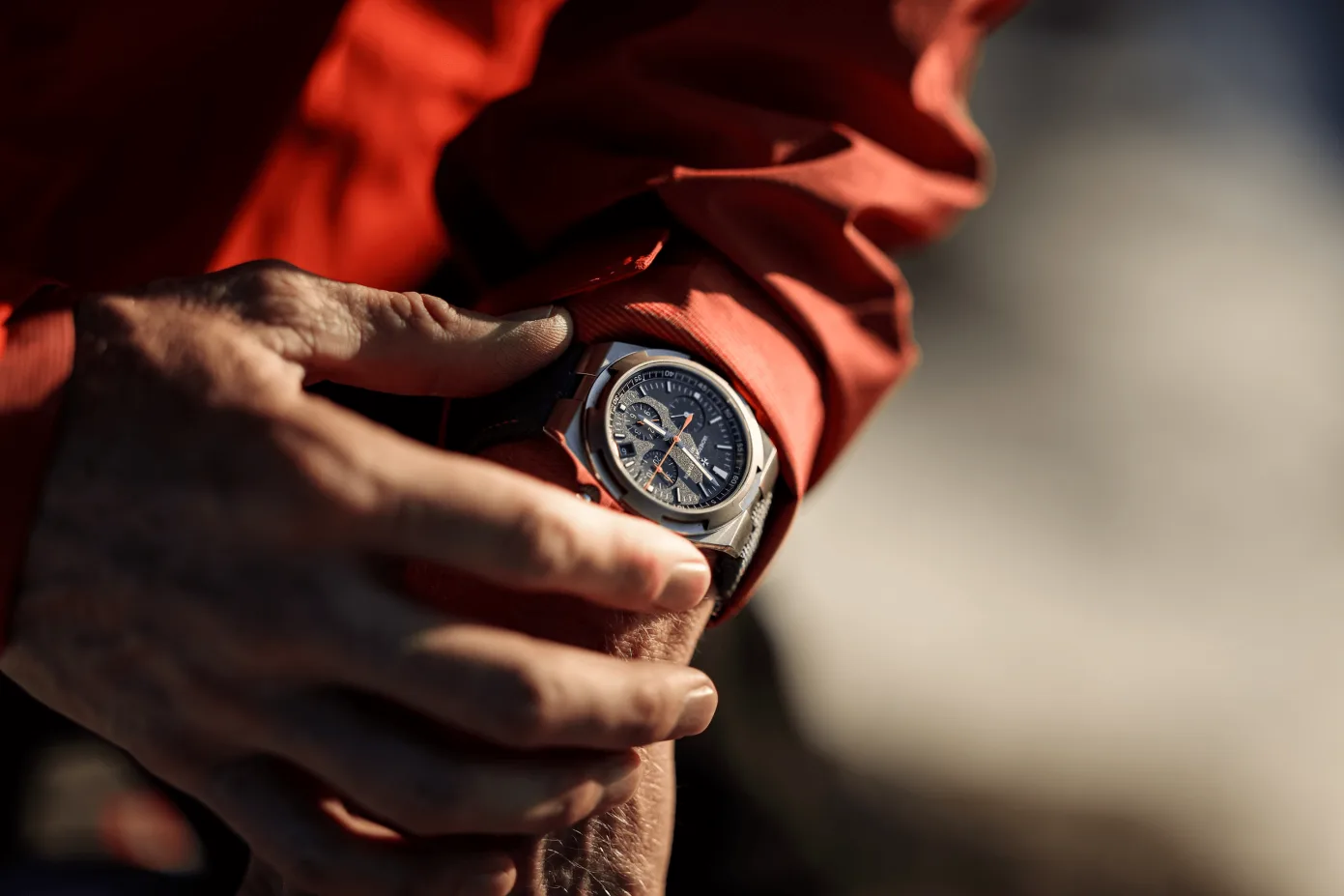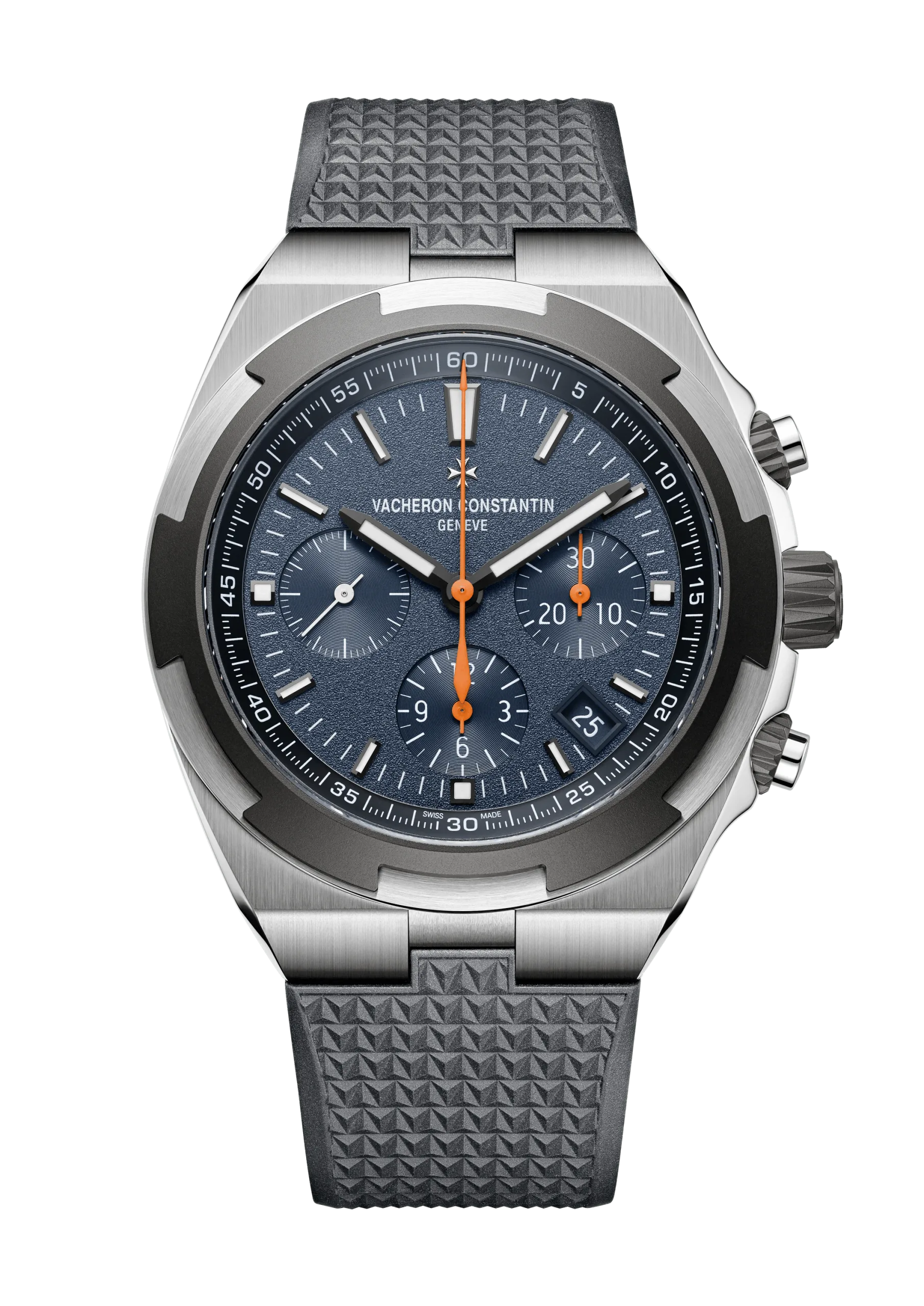 Swiss luxury watch brand Vacheron Constantin has just added two new limited-edition sports watches to its catalog. Featuring textured greyish blue dials with bright orange, a GMT, or a chronograph complication and packed inside a lightweight Titanium case, the new Overseas “Everest” limited edition watches have been designed to salute the spirit of adventure and travel.
