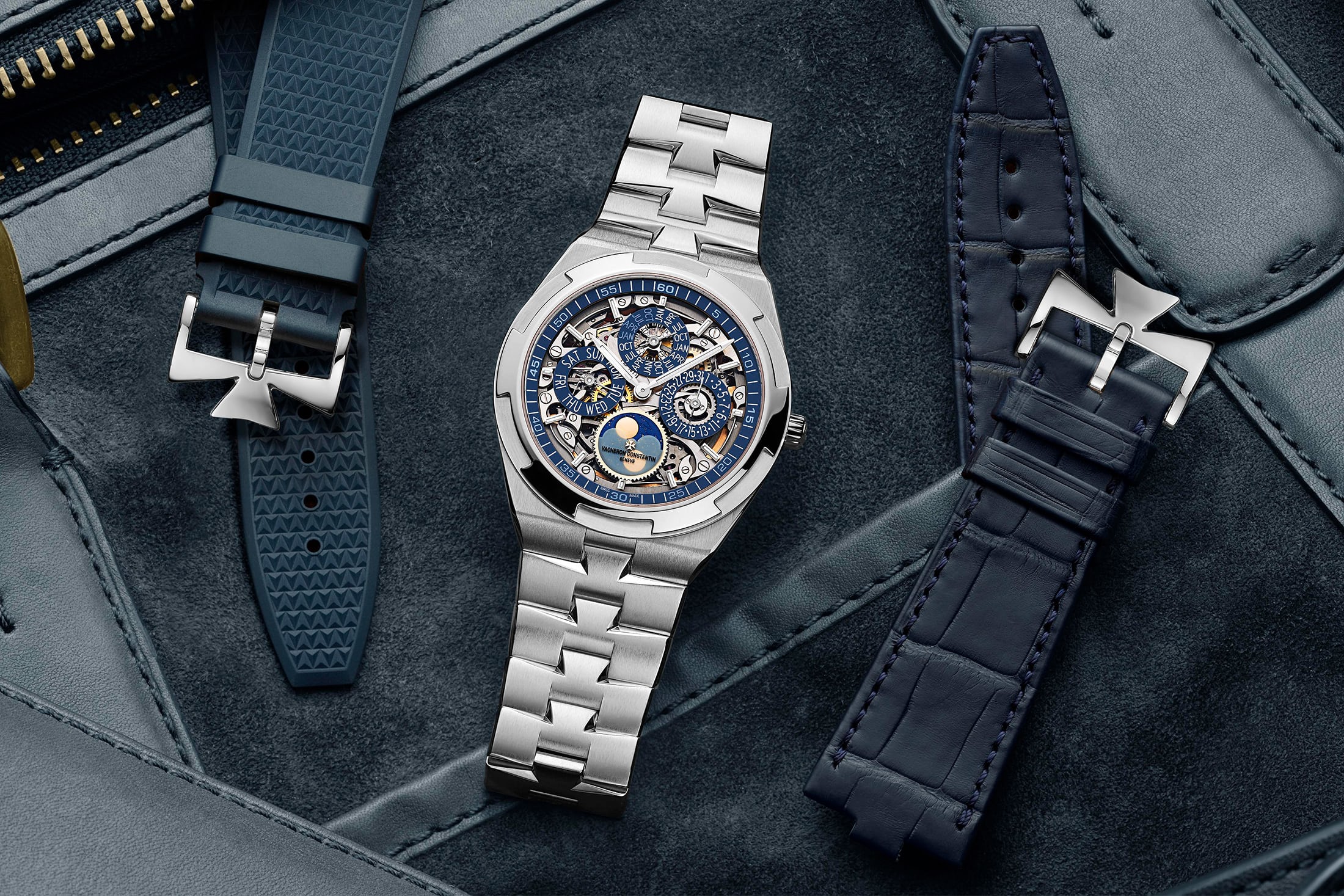 This watch comes with either a skeletonised dial or a solid blue dial, depending on how legible you’d like your watch to be. I’d go for the skeleton option and be done with it; who needs to know the precise time anyway? Around these new dials is a case made of solid white gold. Connected to it is a bracelet that is also made of white gold (although it has a quick-change system, so you could swap that out if you wanted). The case measures 41.5mm in diameter and just 8.1mm in thickness, making this an extremely thin watch given the perpetual calendar inside it.