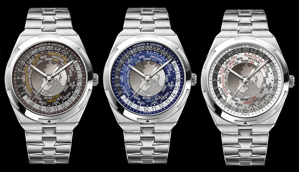 Available in three different colors, the timekeeper comes with Vacheron’s well-known world-timer complication that indicates the time in 37 timezones around the globe. We’ve seen world time-incorporated pieces before in pieces like the Jaeger-LeCoultre Geophysic Universal Time and the Montblanc Heritage Spirit Orbis Terrarum. Vacheron’s take, however, hinges on minimalism with a satin-brushed finished world map at the centre of the dial and a nice velvet touch over the oceans.