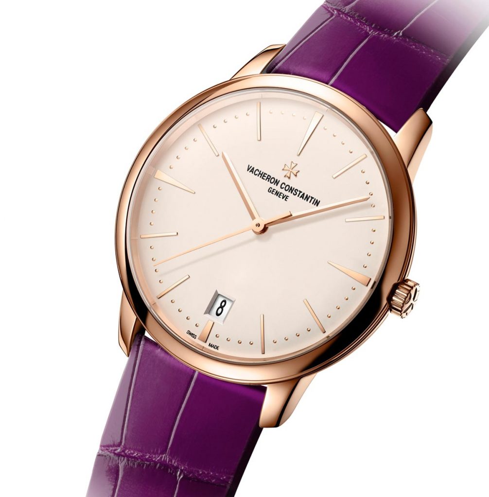 For the men, you can wear this watch on a dark brown Mississippiensis alligator strap. This leather color is perfect for pink gold as it takes the watch to the masculine side quite further. On the other hand, the ladies would certainly love the purple Mississippiensis alligator shiny leather. The straps come with an 18k pink gold buckle.