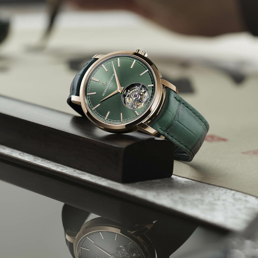 It’s pertinent to mention the old Chinese saying “A Gentleman of Jade”; which describes the most important characteristics of a gentleman, a person with elegance, dignity and a noble and virtuous character. Considering the color of the dial… which is jade, it’s not hard to determine that the same characteristic is echoed onto the watch in the form of jade color. Since ancient times, the Chinese believe that a true gentleman is noble and dignified, which is the inspiration behind the jade color of Traditionnelle Tourbillon. The gemstone jade has been a treasure of Chinese tradition since ancient times, it’s a symbol of morality throughout Chinese history. Even the green color has poetic value in Chinese literature and poetry, it’s described as gentle, soothing, and full of vigor and energy. The quality and preciousness of jade is determined by the purity of its color. The shade of green that this first high complication Traditionnelle Tourbillon China Limited Edition by Vacheron Constantin is dressed in, is known as the “Imperial Green” color and it’s considered the purest and most sophisticated shade of jade, the “jadeite” as it’s called.