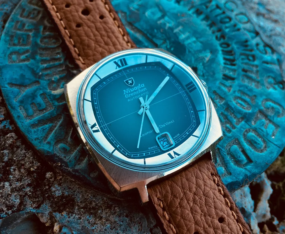 Nivada Grenchen was a major brand back in the day, with their sport models being high-quality pieces that many collectors in vintage vie for. Nivada has always been one of those companies that can be easy to overlook due to the name being one that isn’t heard very often in today’s current market. They can trace their lineage all the way back to 1879 in Grenchen, Switzerland. Nivada even had to change their name back in the 1960s due to Movado suing them over what was perceived as a name that was much too similar to theirs. As a result, Nivada found with the Croton name attached as well, a distributor for Nivada from back in the 1940’s. The watch that we will discuss today is the 1969 Nivada Leonardo DaVinci, in my opinion one of the most visually pleasing watches that this company ever put onto the wrists of thousands.