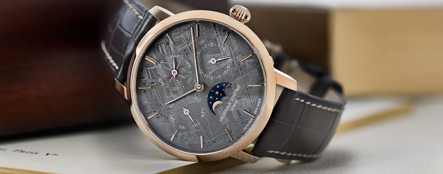 In the world of watches, the term “in-house” is generally associated with high-end luxury watches, which are exorbitantly priced and are out of reach for the average watch enthusiast out there. Dig a little deeper though and you would come across brands such as Frederique Constant, who produce some finely crafted watches with in-house movements at a relatively affordable price point. Frederique Constant makes some nice and elegant looking watches such as the Frederique Constant Classic Manufacture Moonphase watch which we looked at here, and for this year’s Only Watch auction, the brand has come up with a special version of their Slimline Perpetual Calendar watch. The Frederique Constant Manufacture Perpetual Calendar for Only Watch 2017 comprises of a rose gold case, a manufacture movement, and a stunning meteorite dial. Yes, you heard me right, a meteorite dial.