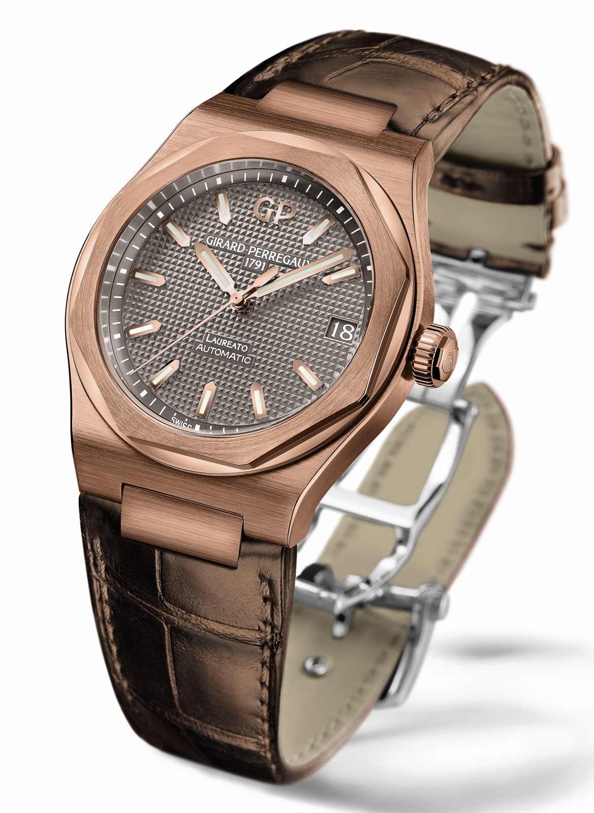 Powering the Laureato 2017 Special Edition is a mechanical self-winding movement, GP01800–0008 boasting 54 hours of power reserve. Parts of the movement can be seen through the highly decorated exhibition caseback.