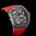 Moreover, this unique piece wears on a sporty black rubber with black alligator leather coating and yellow stitchings. The watch will also be auctioned in a beautifully customized Only watch box.