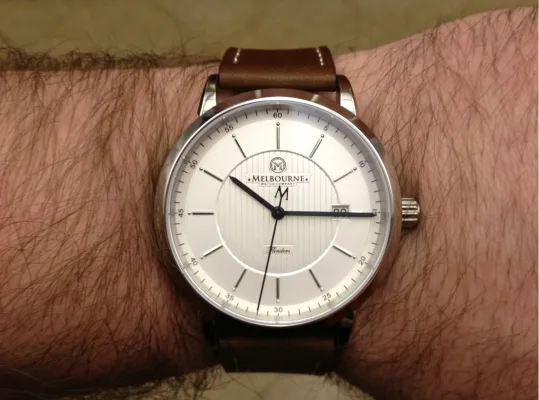 The day had finally arrived. My gift from Melbourne Watch Company, and WrsitReview.com had come. Excitement came over me as I began to open rip open the package. The first thing you notice is the impeccably designed display box. Protective, decorative, and accompanied with a warranty card; everything you would want for your brand new time piece. Upon opening, the stylish design of the Flinder pops right out at you, begging you to put it on your wrist.