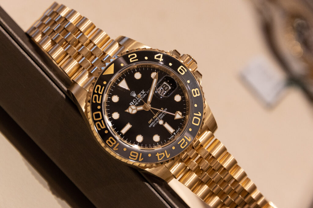 The GMT-Master II is also a classic Rolex watch that is designed for frequent travelers. It features a 40mm waterproof to 100m Oyster case and a bidirectional rotatable bezel. Available in two new versions – yellow Rolesor and 18 ct yellow gold coupled with a Cerachrom bezel insert in grey and black ceramic. The watch has a GMT hand that allows you to track two time zones simultaneously. The new versions of the GMT-Master II are fitted on a Jubilee bracelet. The GMT-Master II is the perfect watch for those who travel frequently and want a watch that can keep up with their lifestyle.