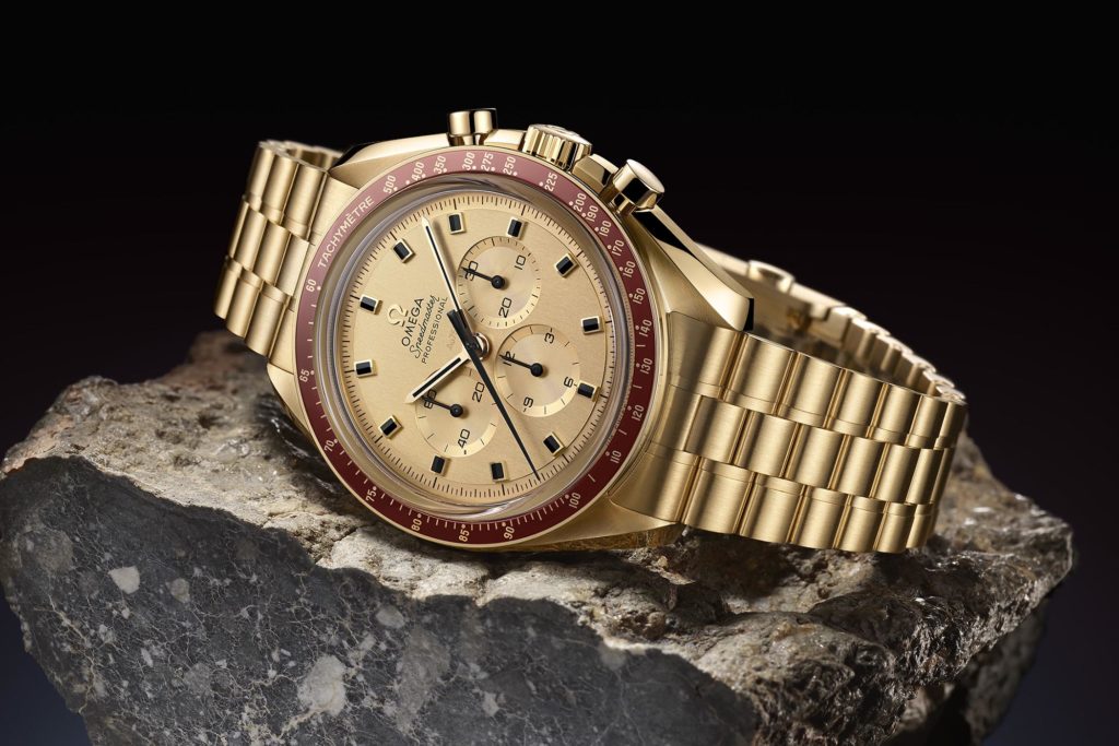 I always loved the old Speedmaster Ref BA145.022. A limited-production Speedmaster made from solid gold with a solid gold bracelet to commemorate man’s landing on the moon for the very first time. To celebrate 50 years since the first landing, Omega decided to re-introduce the gold Speedmaster for another limited-edition run. The original watch used the calibre 861, a Lemania movement which powered the Speedmasters that went to the moon. That movement is on display through the caseback of the 50th anniversary, looking resplendent and yet featuring modern innovations such as a silicone balance spring, which help it attain Master Chronometer status.