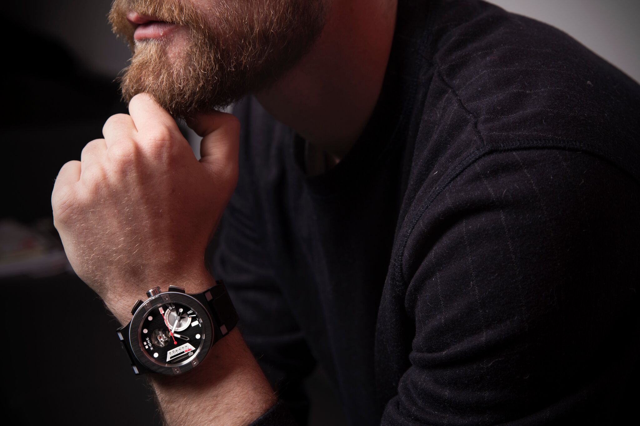 The developers rely on the Swiss SW200 Caliber automatic movement, an interesting choice since it’s very dependable and economical. In a myriad of seemingly electronic readout, the mechanical element is highlighted by an open heart showcasing the balance and the hairspring on the small opening just below the 12 o’clock. Moreover, the SW200 movement beats at 28,800 vibrations per hour boasting of 38 hours of power reserve and 28 jewels.