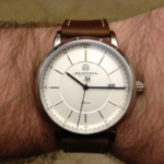 The minute and hour hands are baton shaped and semi skeletonized, which is a sort of cross between other styles of hands I’ve seen, and gives it a modern take on what we are more commonly to see. They also have a nice surface for the lume to be applied. One thing that’s not quite as great is the date wheel. It looks just fine with the black, brown, grey, but its white background stands out a bit too much on the green dialed models. Hopefully future iterations will see a color-matched wheel entering the mix. Then again, things like date wheel color are relatively minor concerns. The Helmsman will come with three straps: vintage brown leather, smooth black leather, and a black NATO for active use.