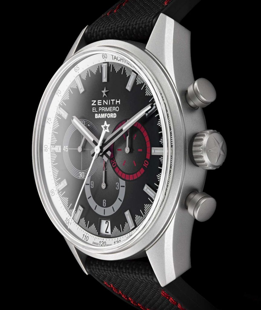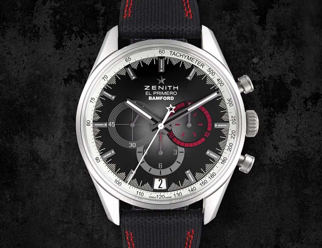 Just in case you are unaware, Bamford watch department is a company based in the UK that specializes in customizing watches by giving them a bold and daring colorful twist that the manufacturer would not prefer to attempt. With the new El Primero Radar Bamford seems to have taken a more conservative approach. The dial which has been presented in brown is a big departure from the striking neon colors seen on many Bamford watches but looks quite appealing courtesy of the fume treatment. It starts with a lighter tone of brown at the center and turns almost black towards the outer periphery. But what is a Bamford without some playful touches and there are a few of them on this dial. First up are the radar inspired red highlights that can be seen on the 30-minute totalizer and the hands of the sub-dials. Then you have the radial white minute track which is quite reminiscent of older El Primero’s from the 1970s. As for the rest of the dial, there are applied hour markers, three sub-registers at 3, 6 and 9 and a date window at 6.