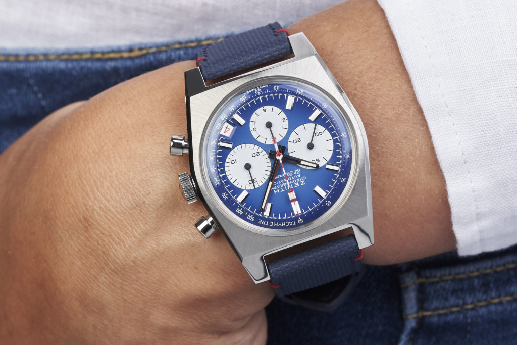 The new Chronomaster Revival Liberty would be accompanied by a matching blue strap with red stitching and would be limited to just 150 pieces. The watch will retail for USD 8,700 and would be available to purchase on Zenith’s American online boutique.