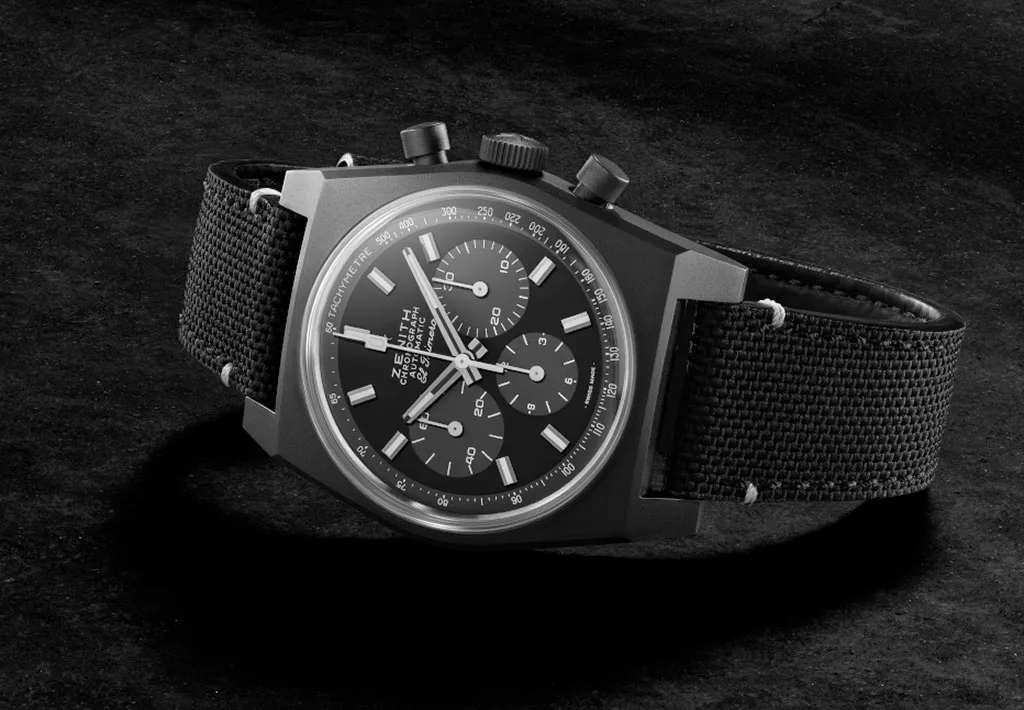 But, this black watch from the brand has more history to it than you might expect. It’s not a custom-made piece for a rapper of some description; instead, it’s based on a 1970 prototype piece that never made it to production, until now. The case of the Chronomaster Revival “Shadow” watch is made from titanium that’s been microblasted to give it a matte finish. Coupled with the black dial and strap, this makes the “Shadow” stand out on the wrist but blend in after dark, perfect for cocktail parties. Or the cinema. The case is only 37mm at the widest part excluding the crown and pushers, thereby keeping with the vintage style.