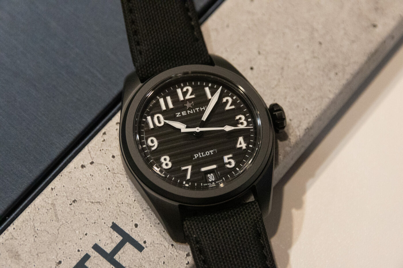 Four models are available right now, with two chronographs and two three-handed watches. While I got to see all four in person, time restrictions in the Zenith booth meant my focus went to the matte black ceramic versions of the new Pilot, but rest assured, the watches are also in stainless steel if the black isn’t your thing.